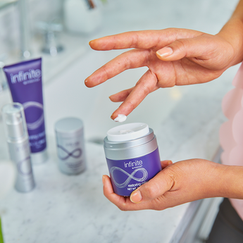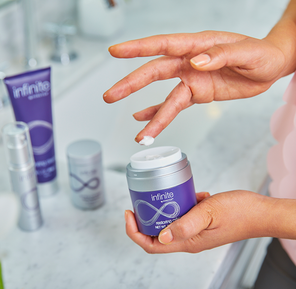 Ολοκληρώνοντας αυτό το καταπληκτικό, ενυδατικό προϊόν, με τη βοήθεια της καινοτομίας και της προηγμένης τεχνολογίας προσθέσαμε μια νέα ένωση σακχάρου φυτικής προέλευσης που βελτιώνει το ενυδατικό φράγμα του δέρματος. Το τελικό και πολύ σημαντικό βήμα στην infinite by Forever™, η restoring crème σφραγίζει όλα τα οφέλη των συστατικών που έχουν διεισδύσει στο δέρμα σας